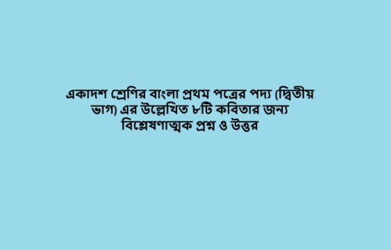 একাদশ শ্রেণির বাংলা প্রথম পত্রের পদ্য (দ্বিতীয় ভাগ) এর উল্লেখিত ৮টি কবিতার জন্য বিশ্লেষণাত্মক প্রশ্ন ও উত্তর