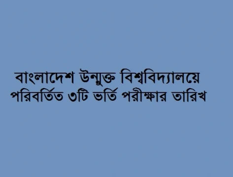 বাংলাদেশ উন্মুক্ত বিশ্ববিদ্যালয়ের ৩টি ভর্তি পরীক্ষা নিচের পরিবর্তিত তারিখ অনুযায়ী অনুষ্ঠিত হবে।
