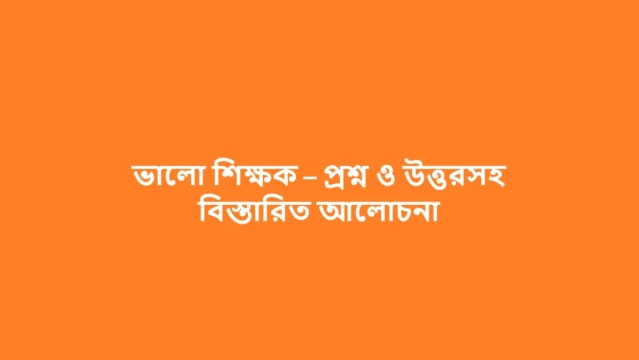 ভালো শিক্ষক – প্রশ্ন ও উত্তরসহ বিস্তারিত আলোচনা