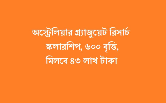 অস্ট্রেলিয়ার গ্র্যাজুয়েট রিসার্চ স্কলারশিপ, ৬০০ বৃত্তি, মিলবে ৪৩ লাখ টাকা