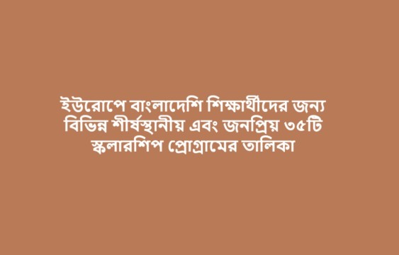 ইউরোপে বাংলাদেশি শিক্ষার্থীদের জন্য বিভিন্ন শীর্ষস্থানীয় এবং জনপ্রিয় ৩৫টি স্কলারশিপ প্রোগ্রামের তালিকা