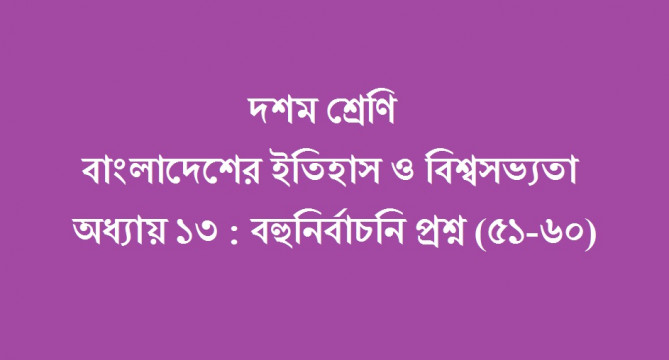 দশম শ্রেণি - বাংলাদেশের ইতিহাস ও বিশ্বসভ্যতা - অধ্যায় ১৩ : বহুনির্বাচনি প্রশ্ন (৫১-৬০)