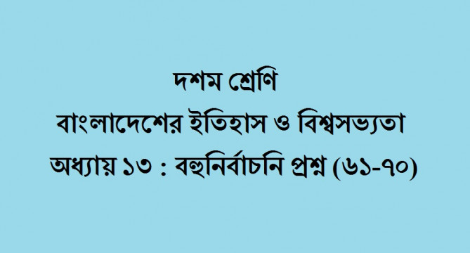 দশম শ্রেণি - বাংলাদেশের ইতিহাস ও বিশ্বসভ্যতা - অধ্যায় ১৩ : বহুনির্বাচনি প্রশ্ন (৬১-৭০)
