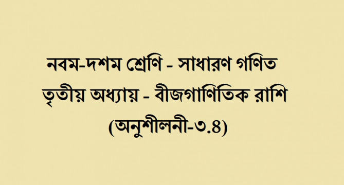 নবম-দশম শ্রেণি - সাধারণ গণিত - তৃতীয় অধ্যায়-- বীজগাণিতিক রাশি (অনুশীলনী-৩.৪)